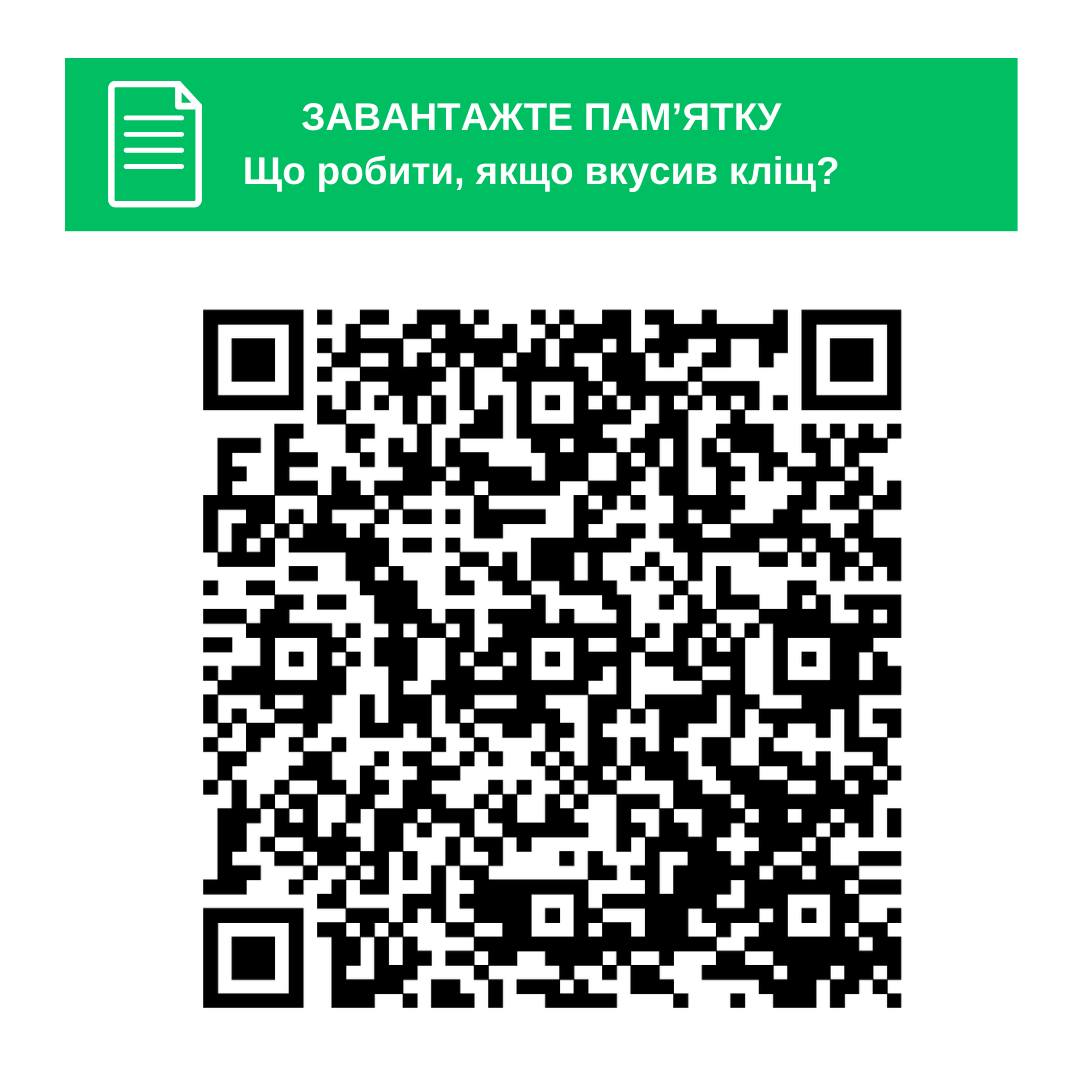 Відскануйте QR-код та завантажте важливу памят’ку “Що робити, якщо вкусив кліщ?”