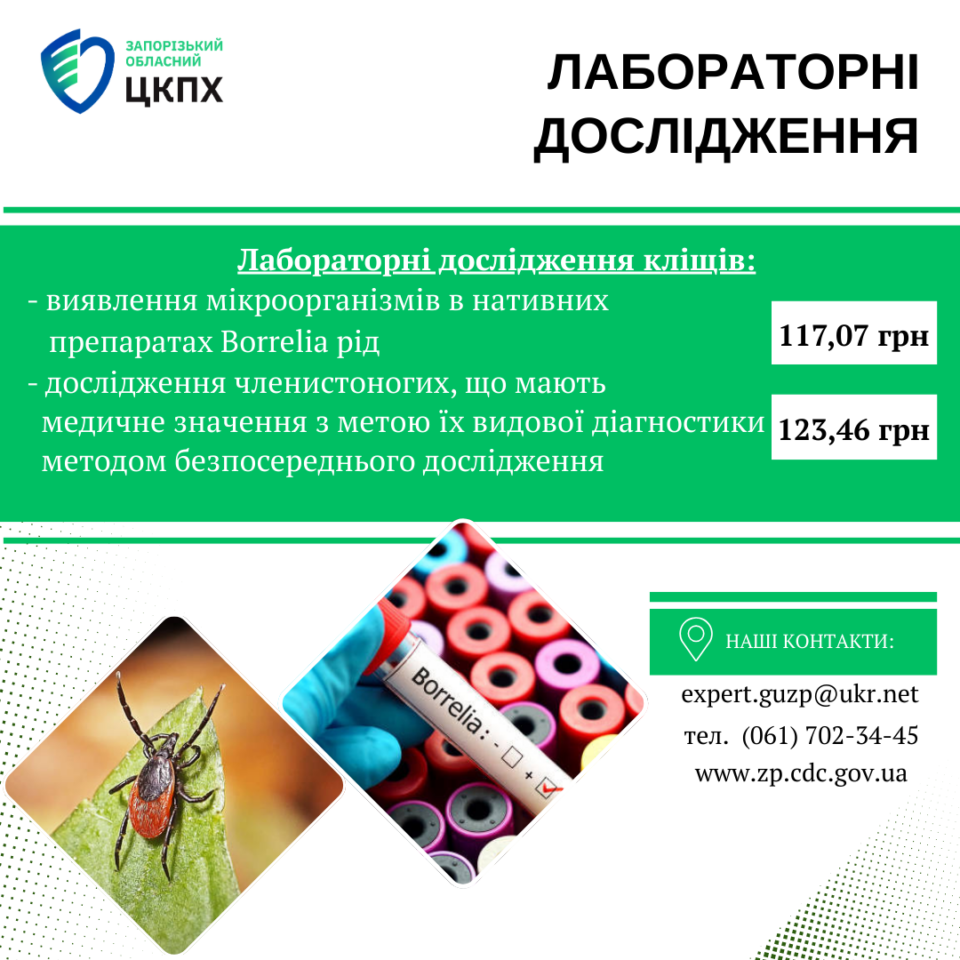 Якщо виявили кліща, негайно зверніться до найближчого травмпункту, для його видалення. Для того, щоб перевірити чи небезпечний він, зверніться до лабораторії ДУ «ЗАПОРІЗЬКИЙ ОЦКПХ МОЗ»