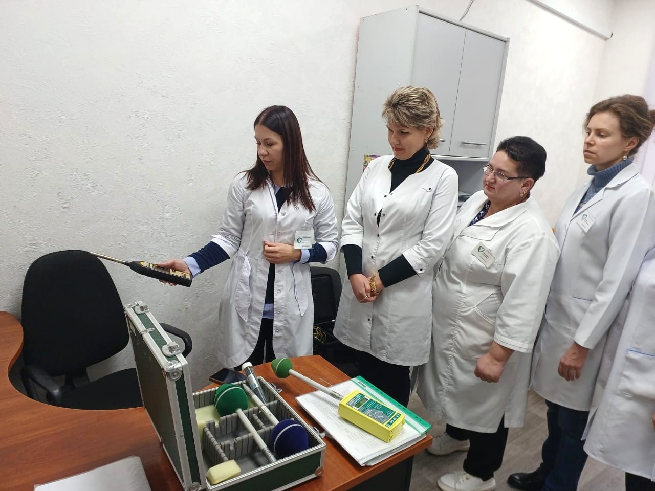 У лабораторії фізичних факторів було проведено теоретична та практична частина циклу з пізнання та оволодіння навичками роботи з приладами ЗВТ для досліджень фізичних факторів. Фельдшери-лаборанти розглянули методики інструментальних досліджень на приладах для вимірювань електромагнітного поля різного частотного діапазону – П3-41, П3-50, для досліджень шуму та вібрації – Октава 110А, Октава 101А, дослідження ультрафіолетового бактерицидного випромінювання – ТКА-ПКМ. Удосконалили знання з роботи вимірювального обладнання для проведення спектрометричних, дозиметричних та радіометричних досліджень при проведенні моніторингу радіаційного стану довкілля, індивідуальної дозиметрії, а також проведені дозиметричного контролю в надзвичайних ситуаціях.