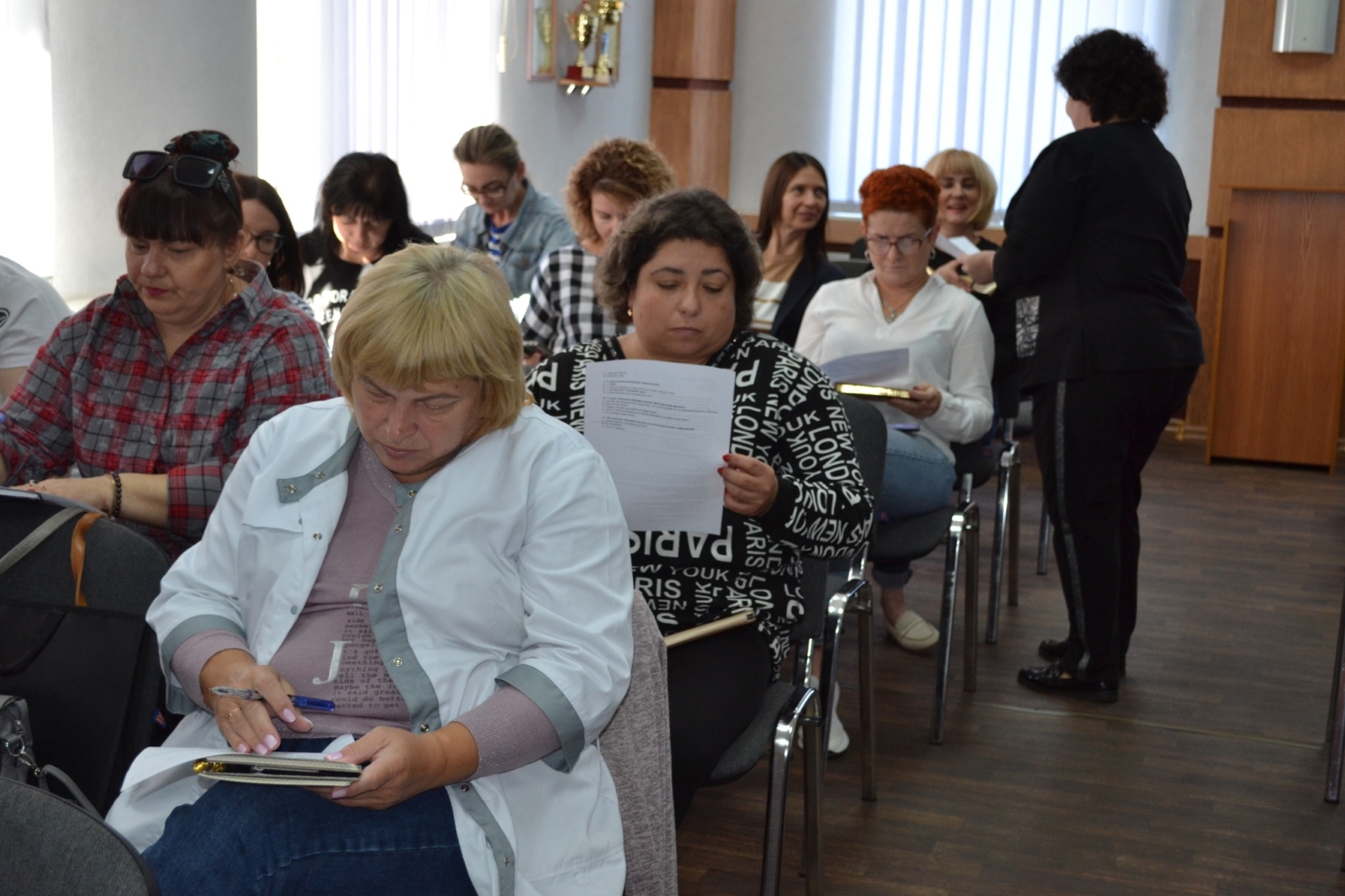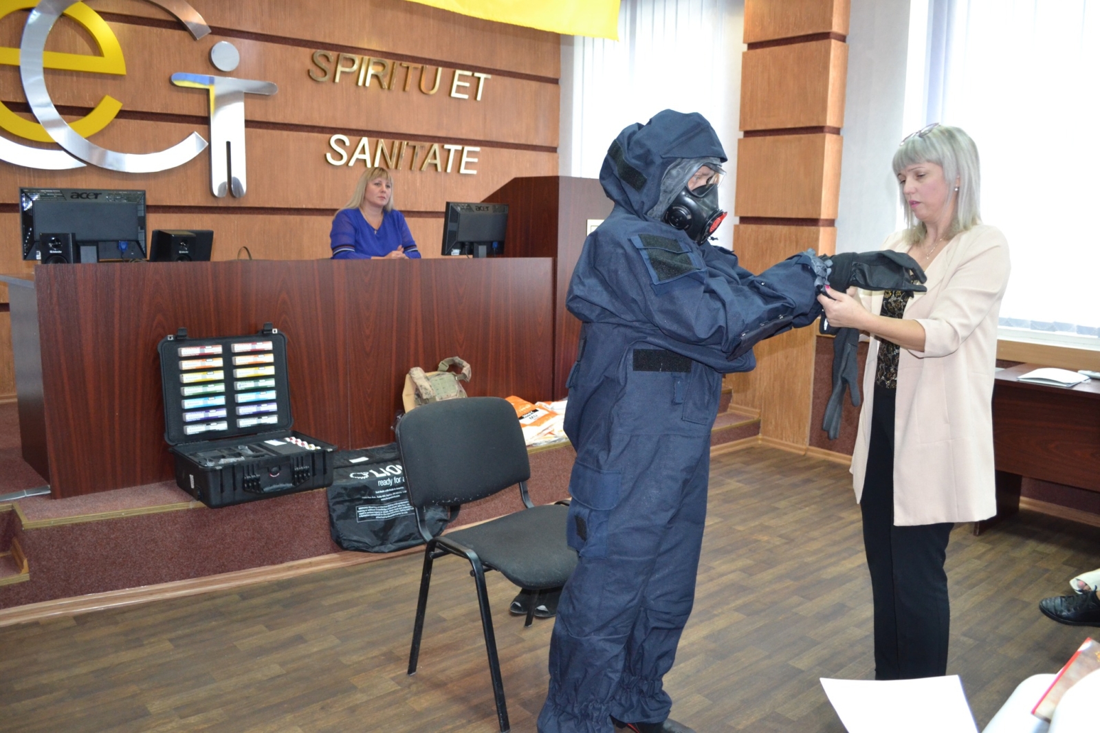 – Лариса Демиденко, фахівець з дослідження факторів навколишнього середовища санітарно- гігієнічної лабораторії доповіла на тему: «Використання засобів індивідуального захисту при хімічній, радіологічній та біологічній загрозах».
