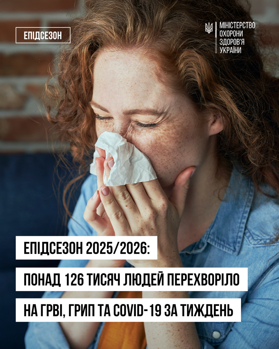 Епідсезон 2025/2026: за тиждень на ГРВІ, грип та COVID-19 перехворіло понад 126 тисяч людей, із них 74 951 дитина.