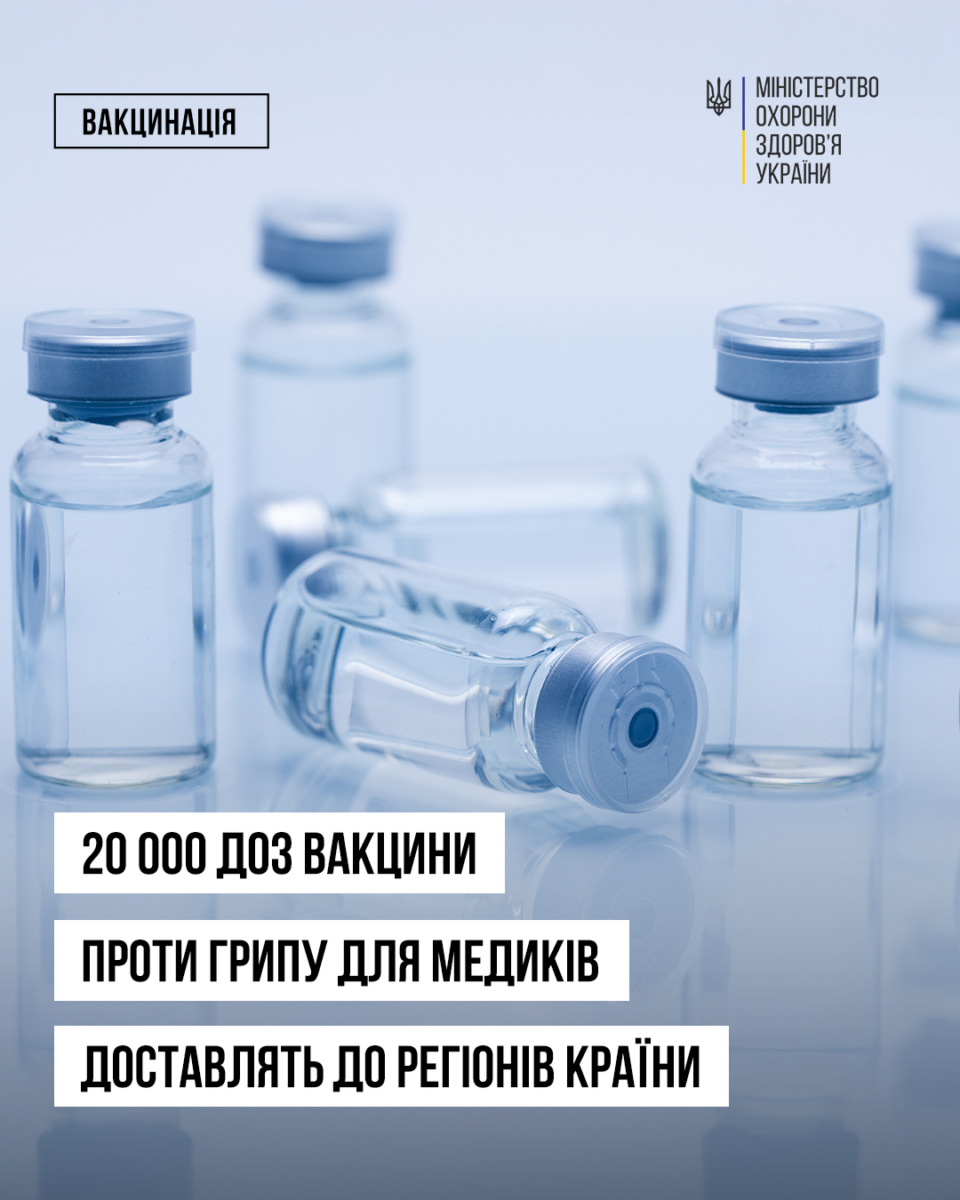 20 000 доз вакцини проти грипу — для безоплатної вакцинації медиків по всій країні
