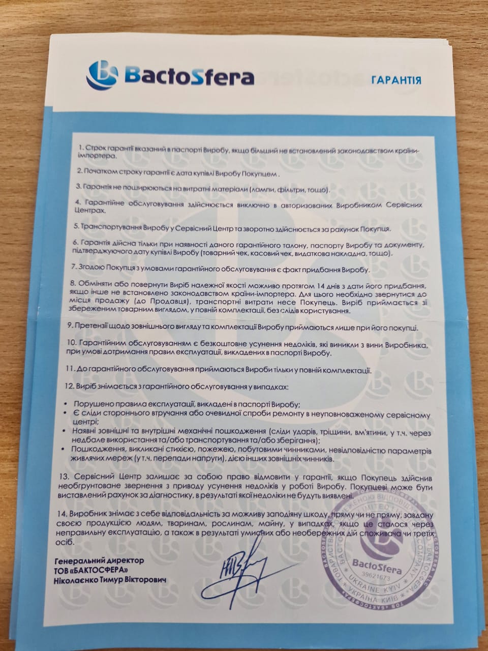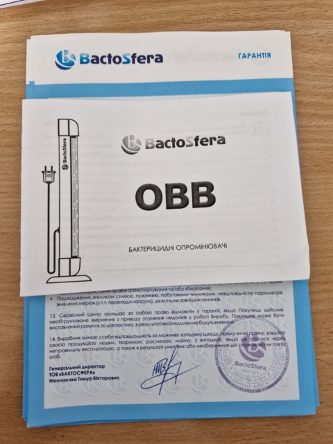 - Безозонові бактерицидні опромінювачі BactoSfera для безпечного знезараження повітря робочих зон лабораторії.