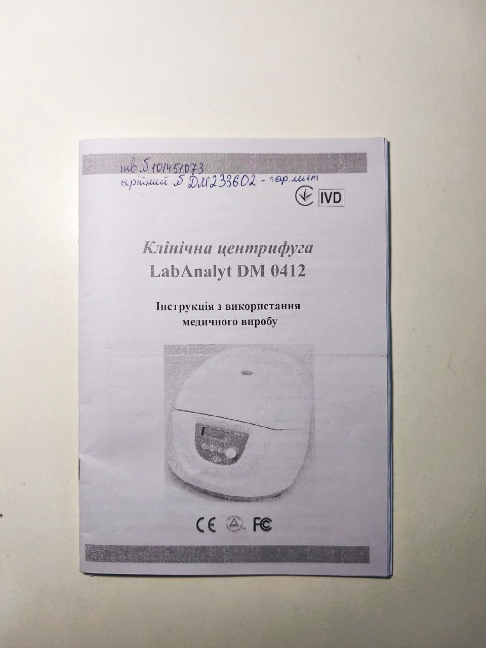 - Клінічна центрифуга з показником відносної центробіжної сили до 2500 g LabAnalit DM 0412;