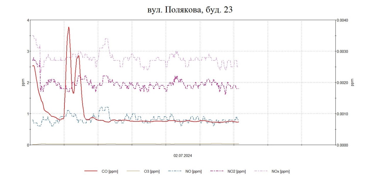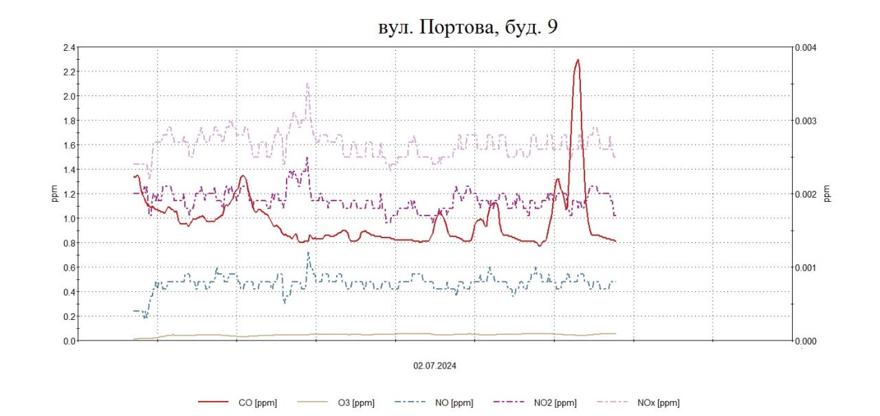 3 липня 2024Протягом дня були проведені планові моніторингові дослідження атмосферного повітря на території житлової забудови по східному напрямку факелу викидів в точках по вул. Полякова,23 , вул. Портова,9 з визначенням максимально-разових концентрацій оксиду вуглецю, сірководню, азоту оксиду, азоту діоксиду , озону, ангідриду сірчистого, аміаку, формальдегіду, фенолу, бензолу, толуолу, ксилолу, пилу недиференційованого за складом, хлору.
