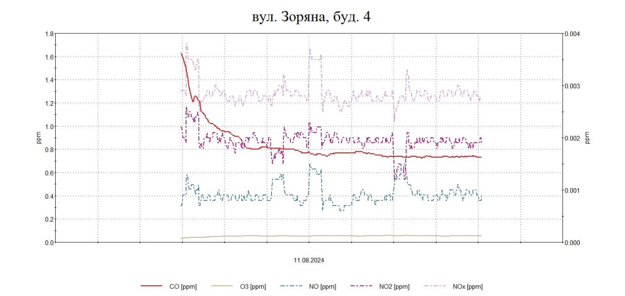 Моніторингові дослідження атмосферного повітря на території житлової забудови 10-11.08.2024