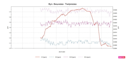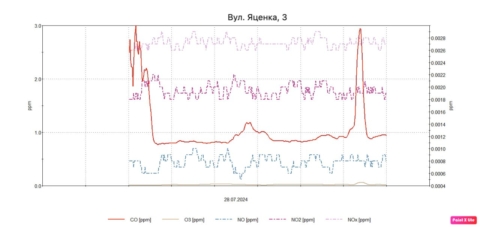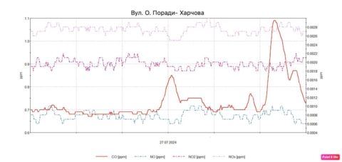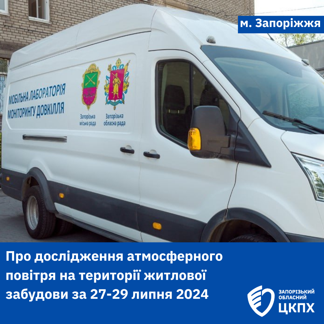 Моніторингові дослідження атмосферного повітря на території житлової забудови 27 – 29.07.2024