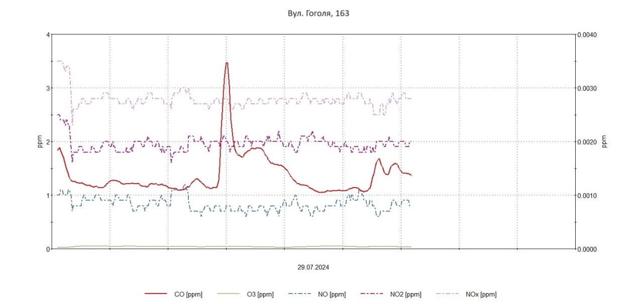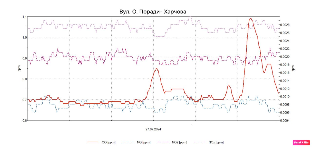29 липня 2024Протягом 27-29.07.2024р. були проведені планові моніторингові дослідження атмосферного повітря на території житлової забудови по східному, північному та північно- західному напрямках факелу викидів в точках по вул. О. Поради-Харчова, вул. Товариська- Ладозька, вул. Яценка, 3, вул. Вишнева- Тімірязєва, вул. Автобусна, 17, вул. Гоголя, 163 з визначенням максимально-разових концентрацій оксиду вуглецю, азоту оксиду, азоту діоксиду, озону, пилу недиференційованого за складом, сірководню, фенолу, ангідриду сірчистого, аміаку, формальдегіду.