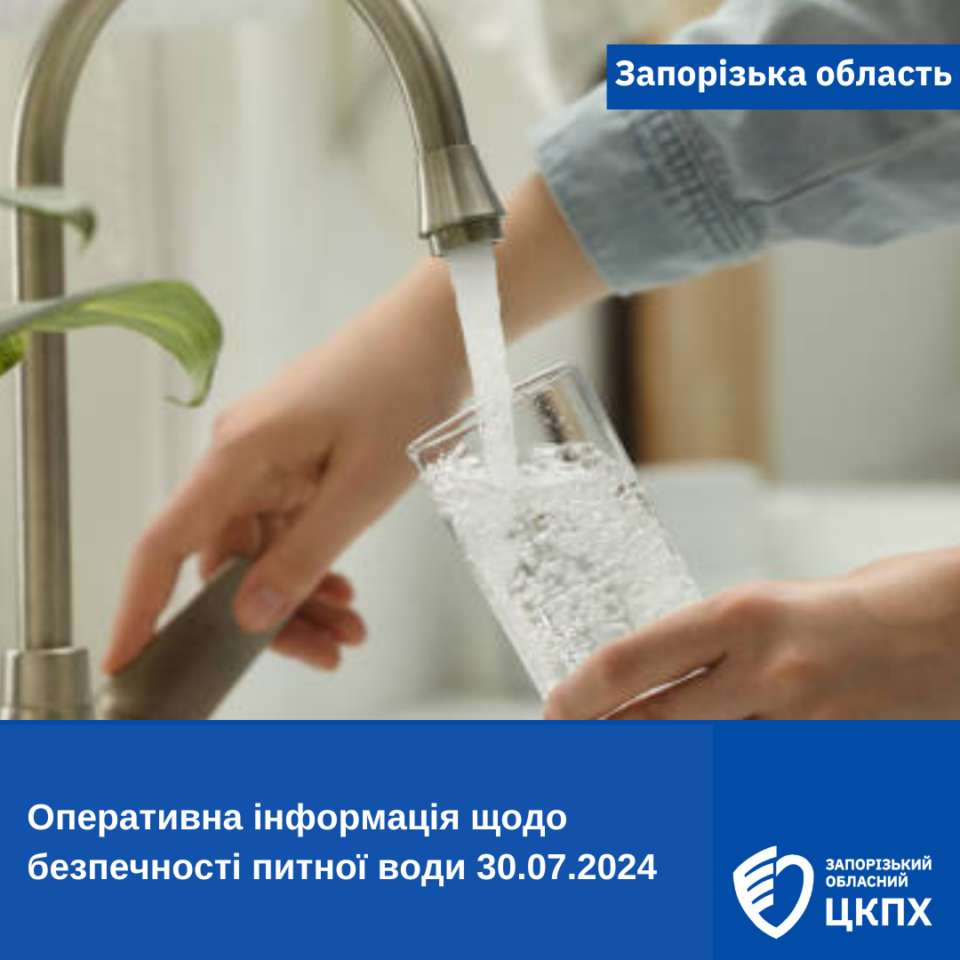 Оперативна інформація щодо безпечності питної води в Запорізькій області за 30.07.2024