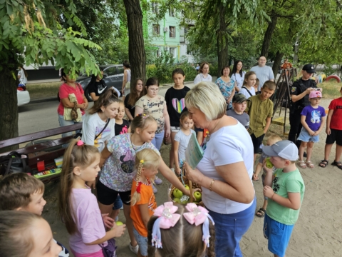 Лікарка з загальної гігієни Катерина Острогляд і санітарна фельдшерка Ірина Кирпа відділу епідеміологічного нагляду (спостереження) та профілактики неінфекційних захворювань розповіли дітям про здоровий спосіб життя та корисне харчування, провели цікаві ігри та вікторини. Найбільш активні дітки отримали смачні фрукти.