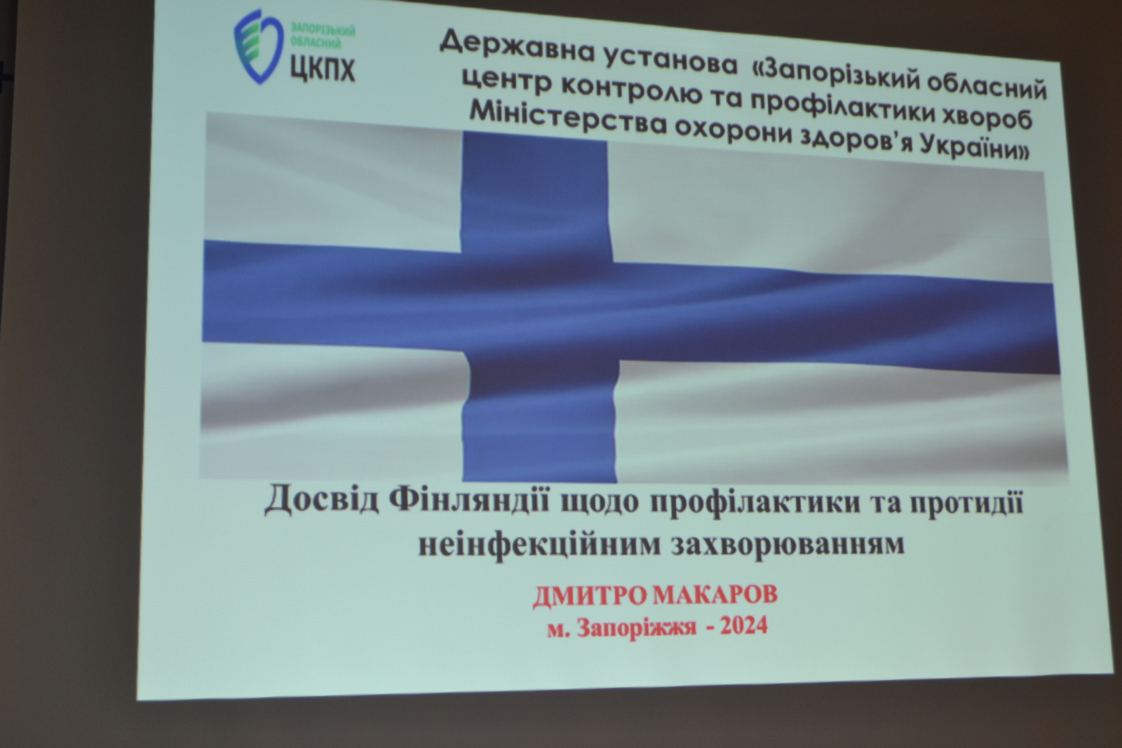 18.09.2024р. відбувся навчальний семінар для фахівців ДУ «Запорізький обласний центр контролю та профілактики хвороб МОЗ України» на тему: «Досвід Фінляндії щодо профілактики та протидії неінфекційним захворюванням».