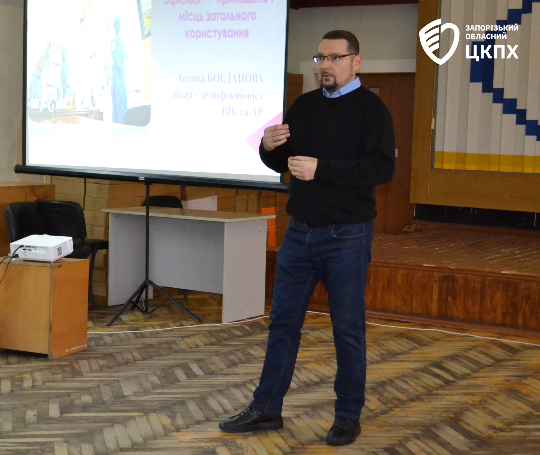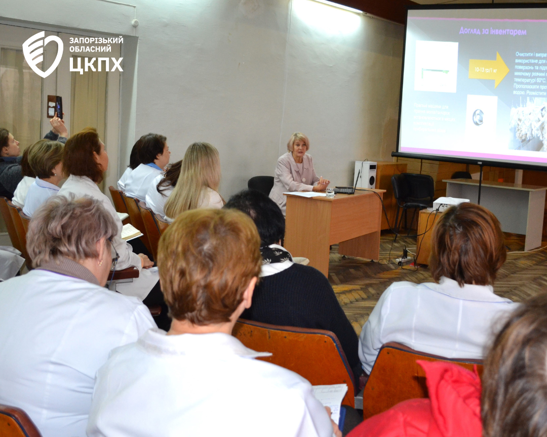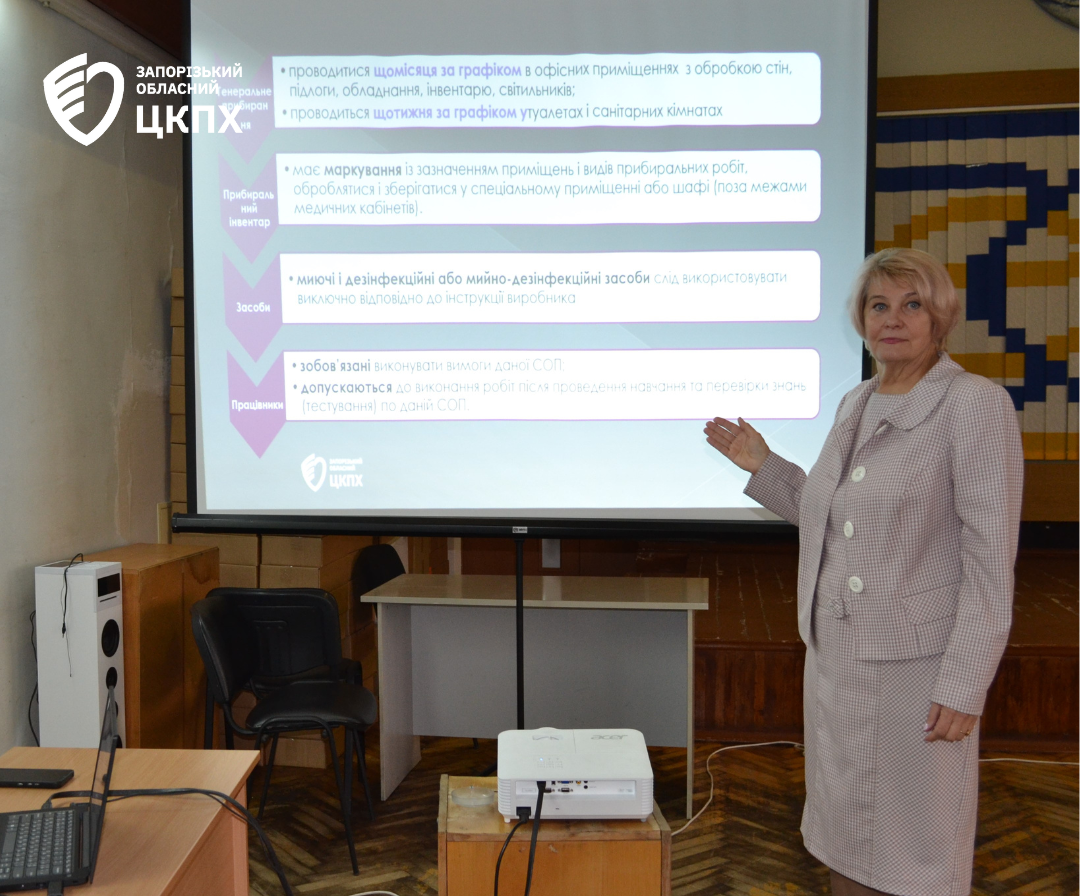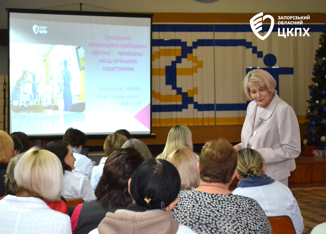 11 грудня лікар-дезінфекціоніст вищої категорії відділення інфекційного контролю та антибіотикорезистентності ДУ «Запорізький ОЦКПХ МОЗ» Тетяна Богданова провела плановане навчання щодо стандартної операційної процедури «Проведення генерального прибирання офісних приміщень і місць загального користування» для працівників медичних лабораторій та технічного персоналу структурних і відокремлених структурних підрозділів ДУ «Запорізький ОЦКПХ МОЗ».