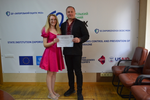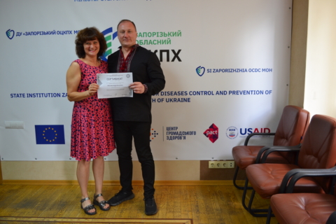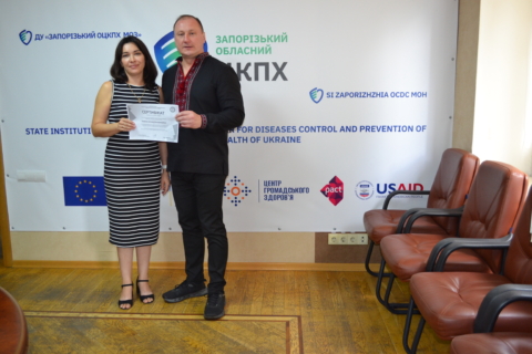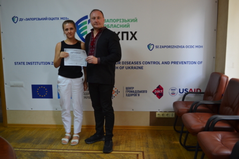 Наприкінці заходу генеральний директор ДУ «Запорізький ОЦКПХ МОЗ» Тищенко Тарас привітав бактеріологів-учасників навчання заходу з успішно складеним тестовим іспитом та вручив сертифікати