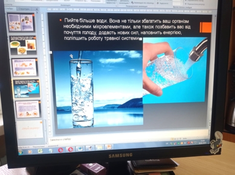 В освітньому заході взяли участь 29 школярів та педагогів. Підлітки дізналися про здоровий раціон, режим харчування, які продукти найбільш корисні, особливо в підлітковому віці, а які шкодять, зокрема мова йшла про обмежене споживання солі, солодощів, газованих солодких напоїв. Говорили про важливість питного режиму, який вплив вода має на стан організму.
