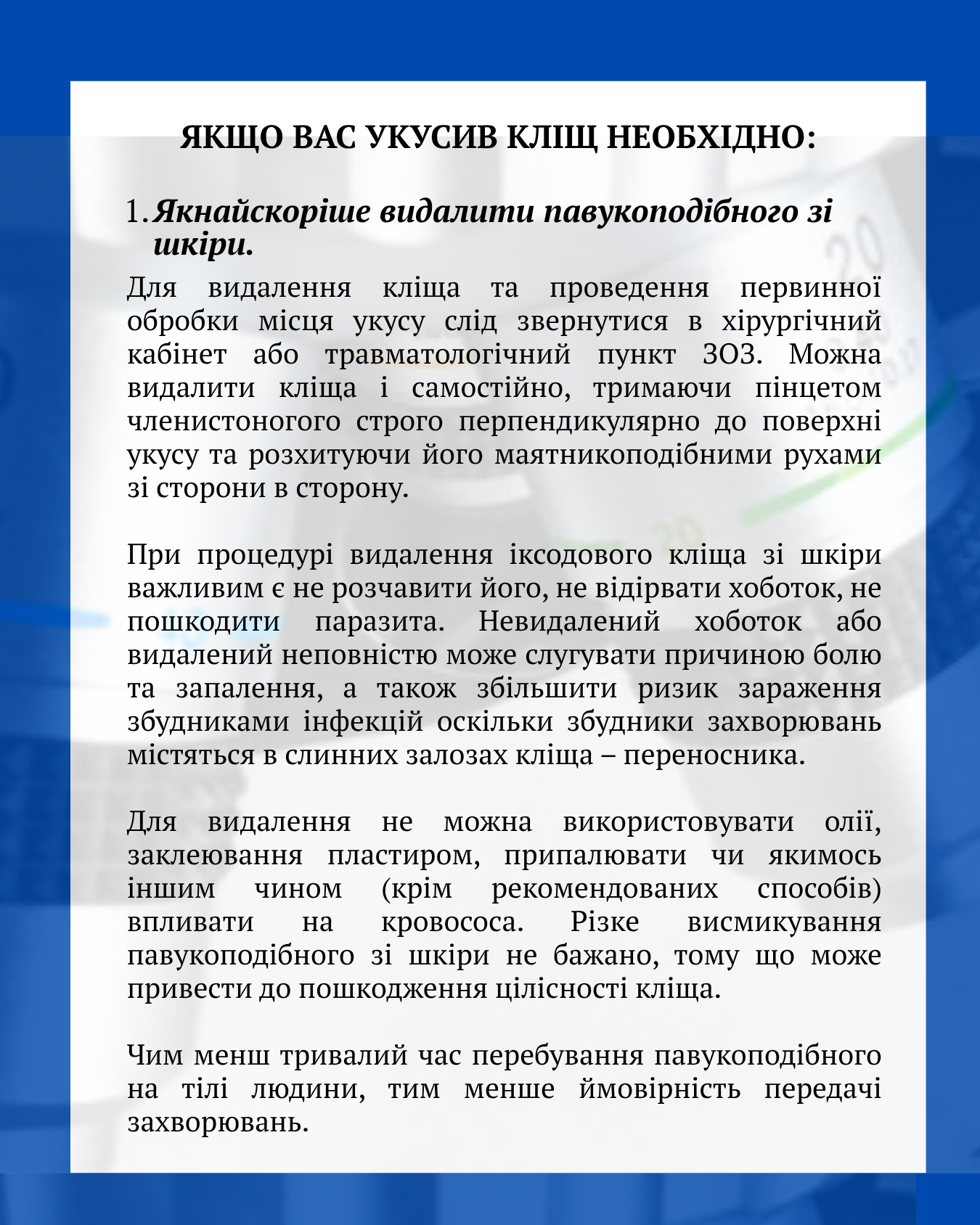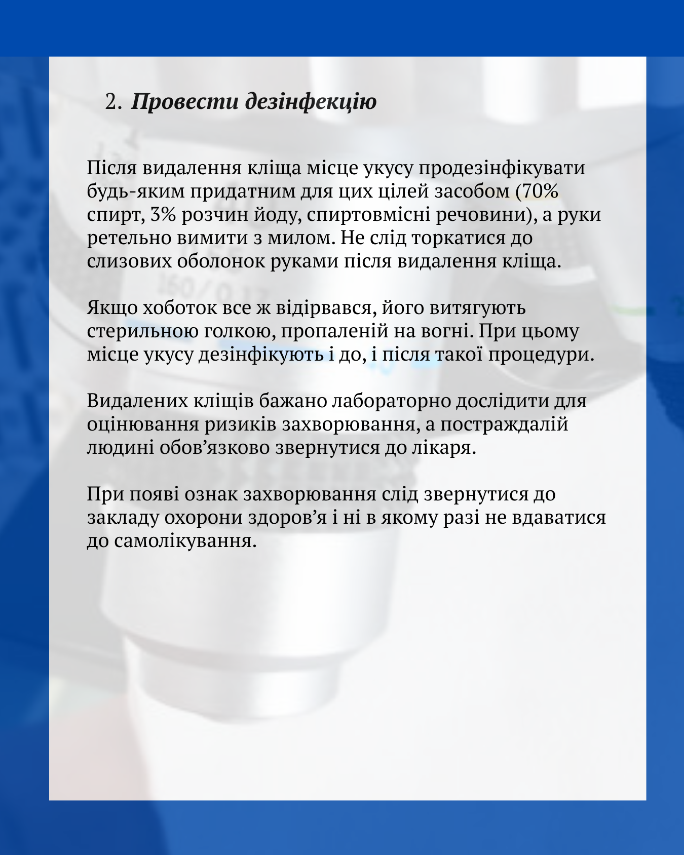 Якщо все ж таки укусу кліща уникнути не вдалося необхідно:
