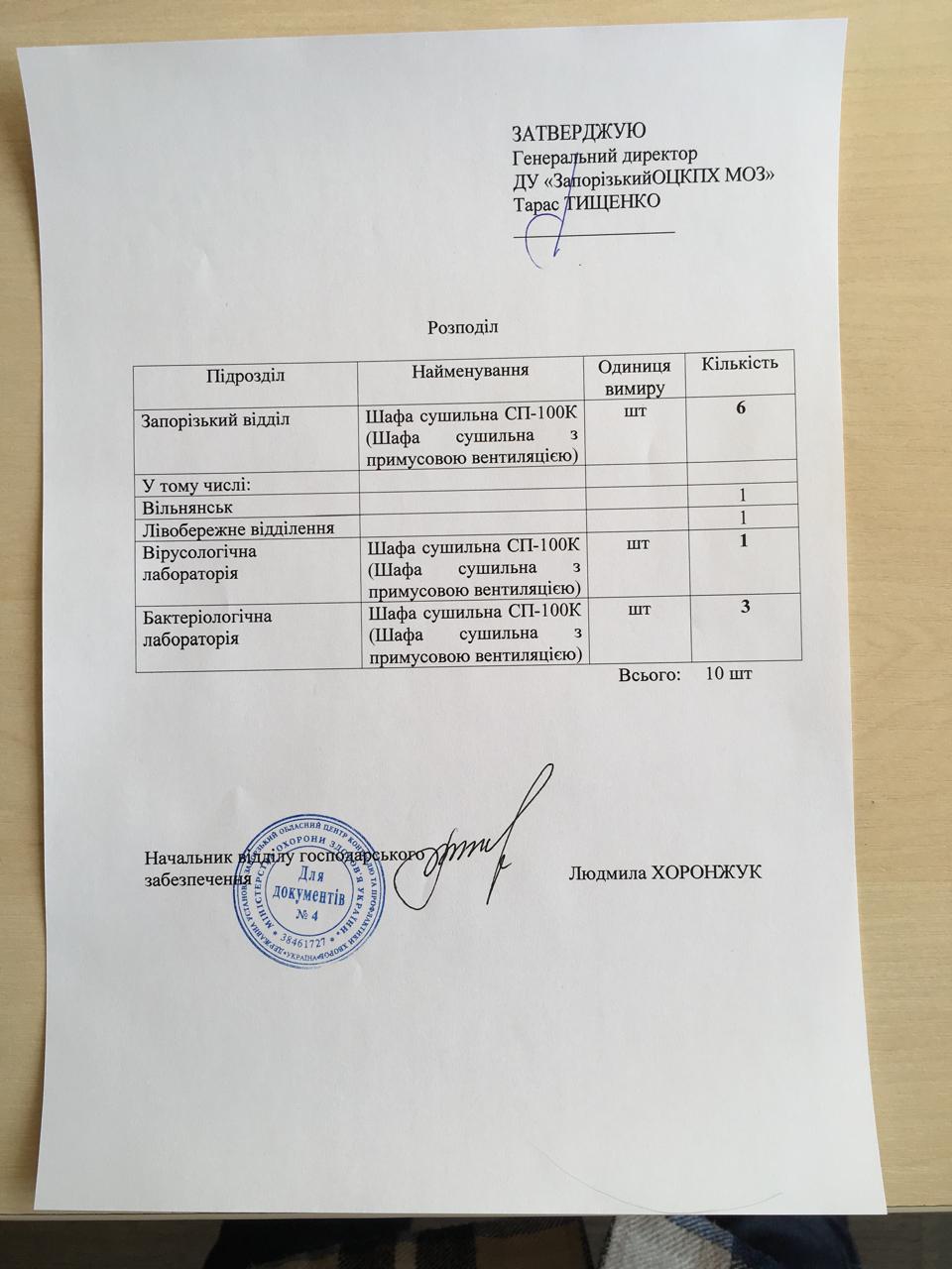 Оновлення обладнання в Запорізькому ОЦКПХ: посилення технічного стану лабораторій мікробіологічного профілю