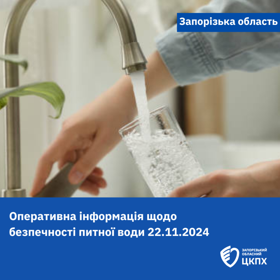 Оперативна інформація щодо безпечності питної води в Запорізькій області 22.11.2024