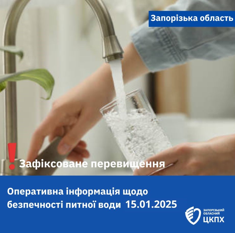 Оперативна інформація щодо безпечності питної води в Запорізькій області за 15.01.2025
