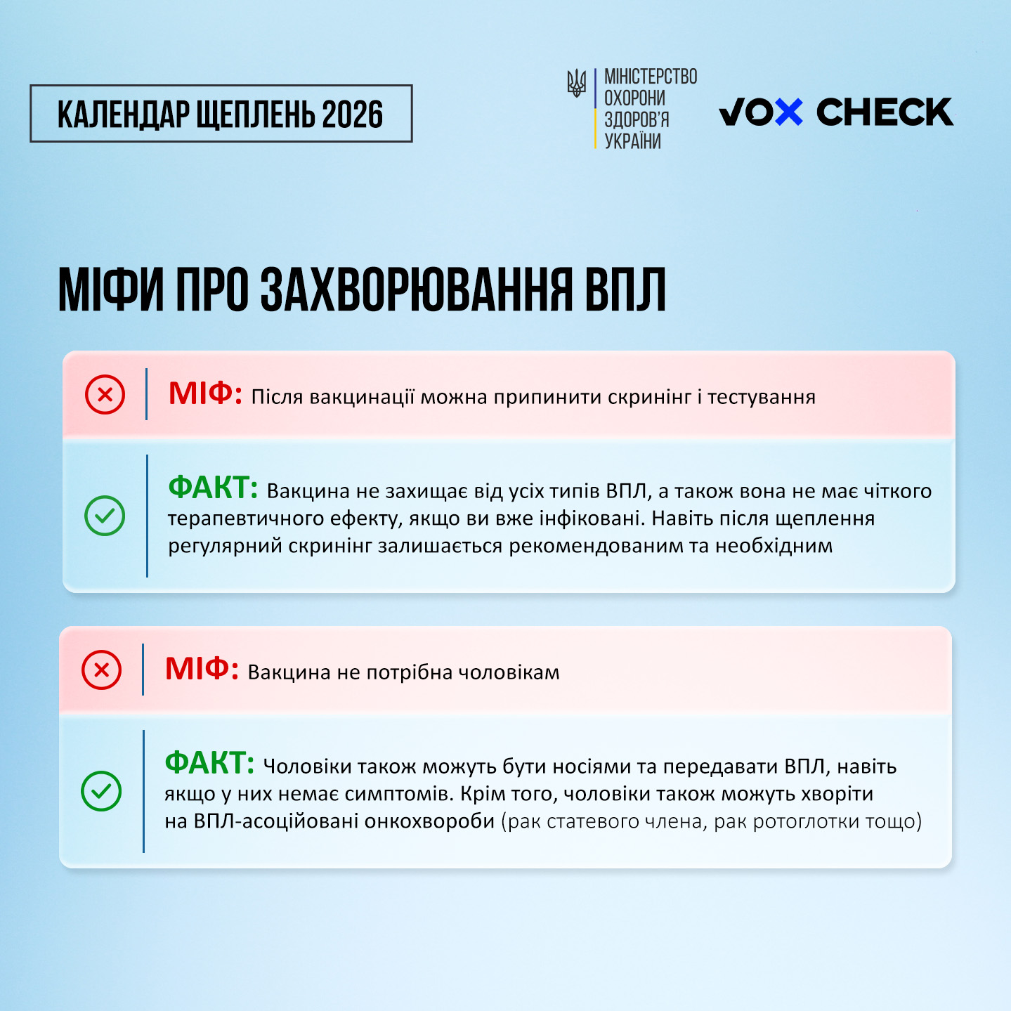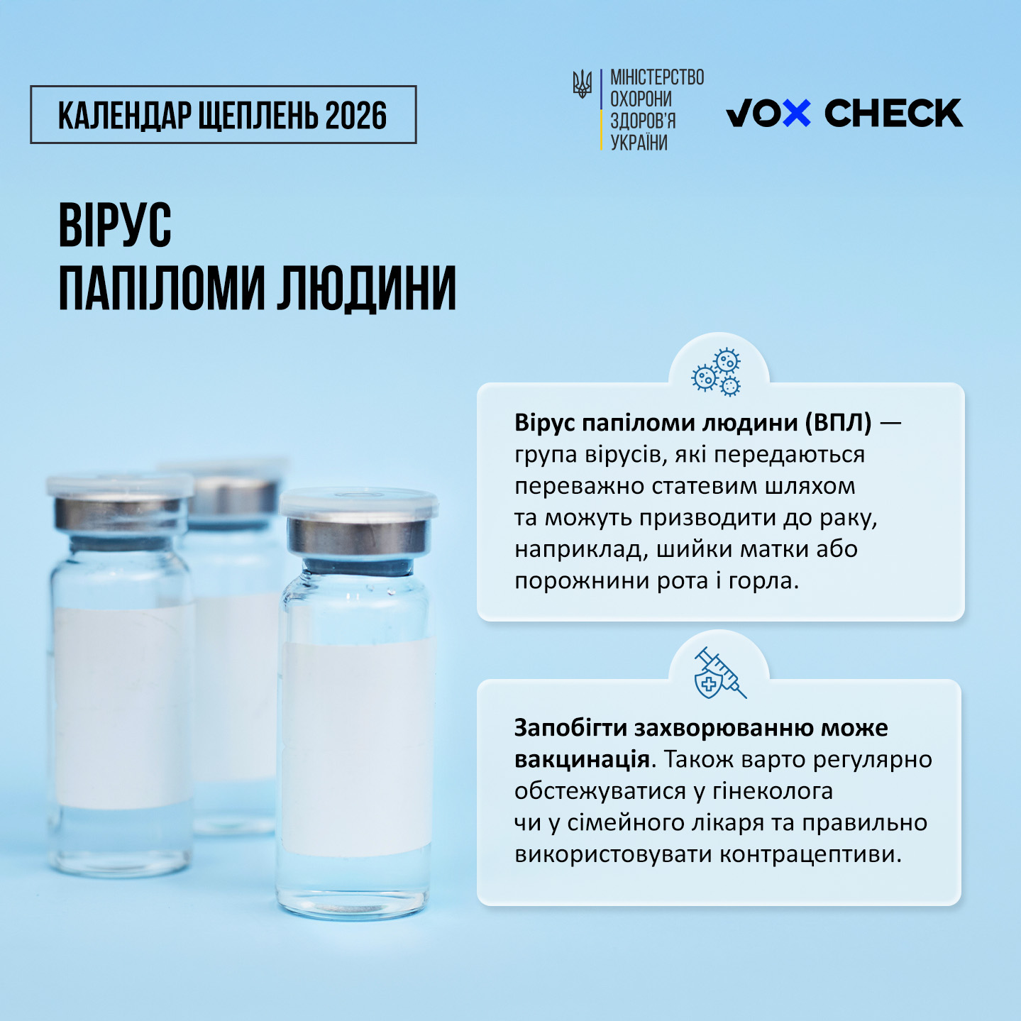 🔹 Вакцинуватися. З 1 січня 2026 року вакцинація проти ВПЛ-інфекції розпочнеться в Україні і буде безоплатною для дівчат 12-13 років включно.