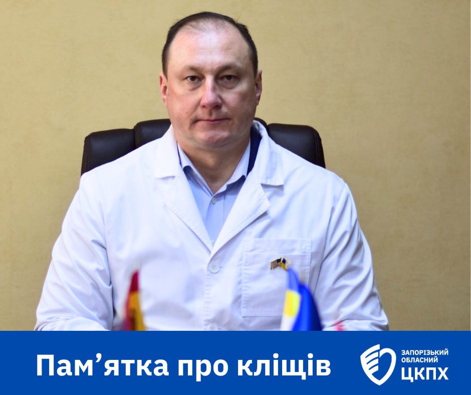 Генеральний директор «Запорізького ОЦКПХ МОЗ України» Тарас Тищенко звертає увагу населення м. Запоріжжя на небезпеку інфікування іксодовими кліщами та нагадує про профілактичні заходи, які допоможуть уникнути інфікування, якщо ви полюбляєте прогулянки на природі.
