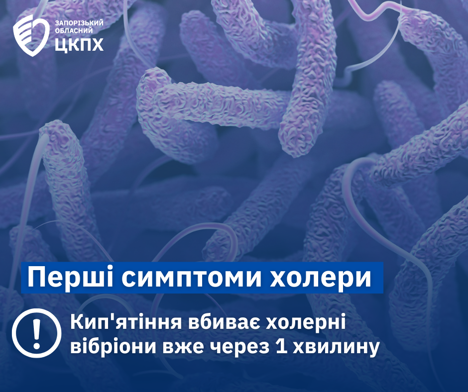 Першими симптомами холери є діарея, блювота, болі у животі.