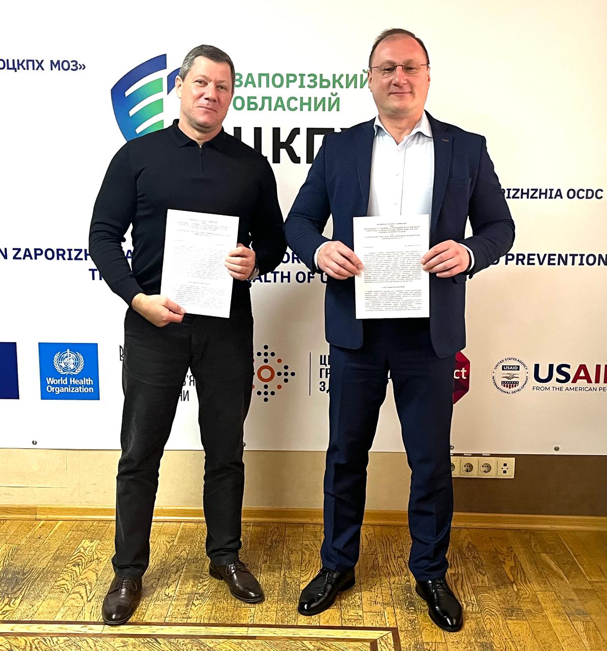 Документ, підписаний генеральним директором Запорізького обласного центру контролю та профілактики хвороб Запорізького ОЦКПХ МОЗ Тарас Тищенко та директором Запорізька гімназія №50 Андрієм Гузеватим який відкриває новий етап партнерства, спрямованого на взаємодію та проведення спільних інформаційно-просвітницьких заходів, підтримку здорового способу життя школярів і працівників освіти.