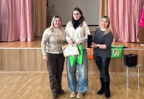 Привітали переможицю конкурсу «Харчуйся правильно: знімаємо та читаємо!» – ученицю 10-б класу Сулікову Варвару, яка посіла почесне третє місце.
