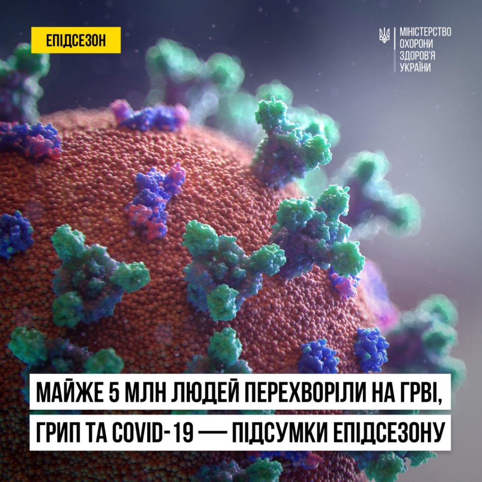 На ГРВІ, грип та COVID-19 протягом епідсезону 2023-2024 рр. захворіли 4 715 963 українці. Кількість летальних випадків – 1 028: із них 82 – унаслідок ускладнень грипу та 946 – серед людей з позитивним результатом тесту на COVID-19.