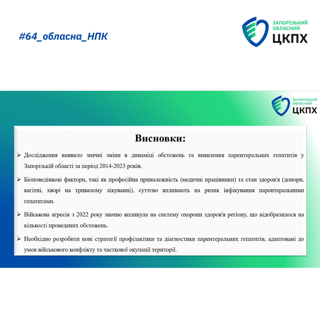 Доповідь: «Вплив біоповедінкових факторів на поширення парентеральних гепатитів у Запорізькій області»