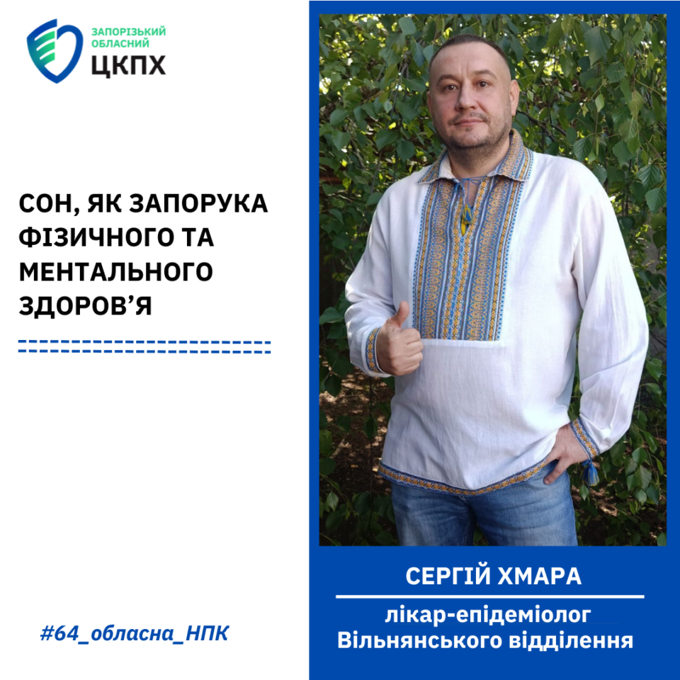 Сергій Хмара, лікар-епідеміолог Вільнянського відділення, досліджує цікаву та важливу тему для здоров’я кожної людини – сон. «Сон та безсоння, якщо і те і інше надмірне, – хвороба», – Гіппократ.