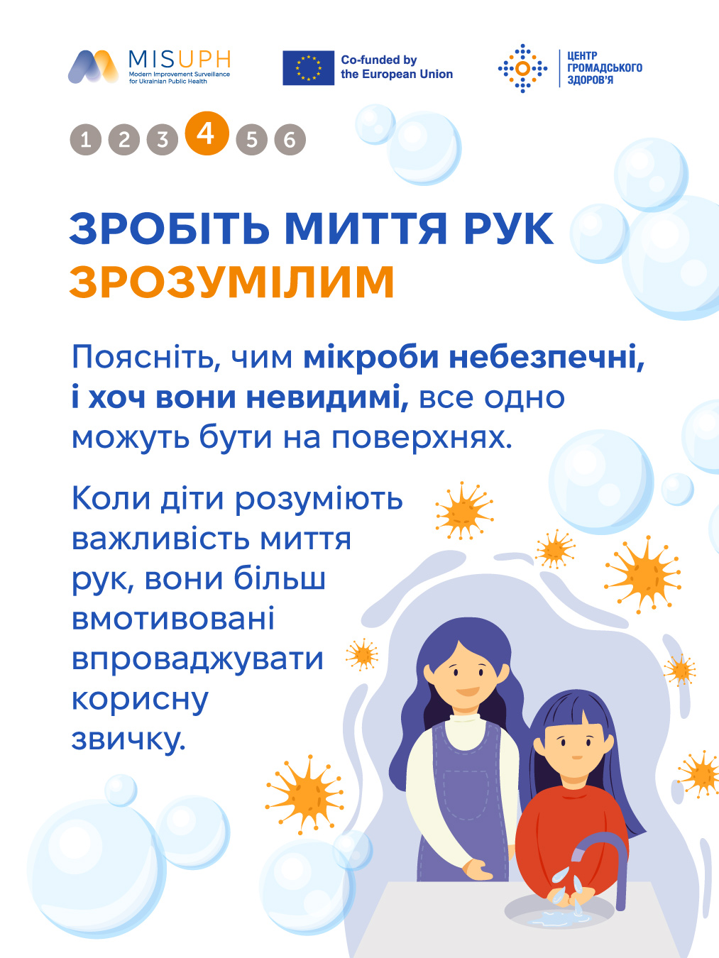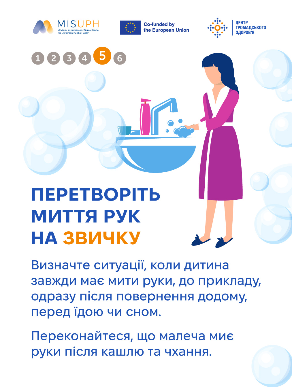 Особливо вразливі до інфікування через руки малі діти. Вони ще не розуміють, чому так важливо тримати руки в чистості й не чіпати очей і рота брудними руками, а природна допитливість спонукає їх торкатися більшої кількості речей довкола, ніж дорослі. Привчити дитину мити руки регулярно — це один із найпростіших і найефективніших способів захистити її від інфекційних хвороб.