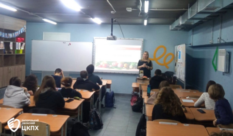 Сьогодні п’ятнадцять восьмикласників Запорізької гімназії №25 отримали нові знання та корисний досвід щодо свідомого вибору на користь здорового харчування. Медичні фахівчині відділу епіднагляду та профілактики неінфекційних хвороб Катерина Острогляд та Ірина Кирпа під час пізнавальної лекції розповіли школярам про основи здорового харчування.