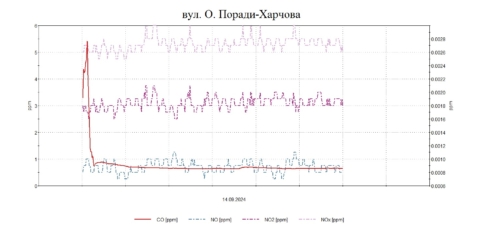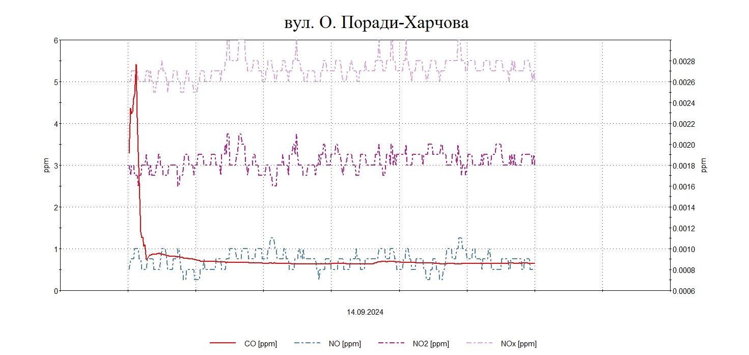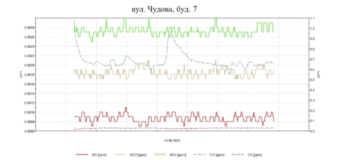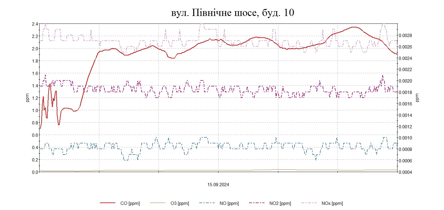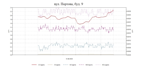 Протягом дня були проведені планові моніторингові дослідження атмосферного повітря на території житлової забудови по південно-східному, східному , північно-східному напрямку факелу викидів в точках по вул. Чудова,7, О. Поради – Харчова, Північне шосе,10, Портова,9 з визначенням максимально-разових концентрацій оксиду вуглецю, азоту оксиду, азоту діоксиду , озону, пилу недиференційованого за складом, сірководню.
