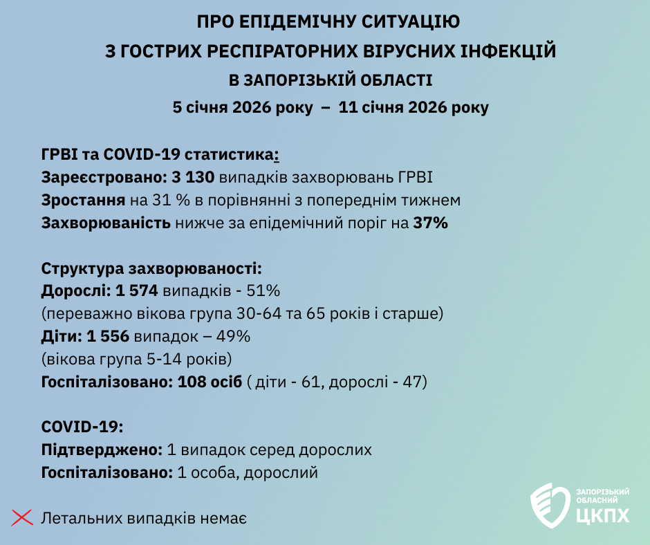 Про епідемічну ситуацію з гострих респіраторних вірусних інфекцій з 5 січня по 11 січня 2026 року