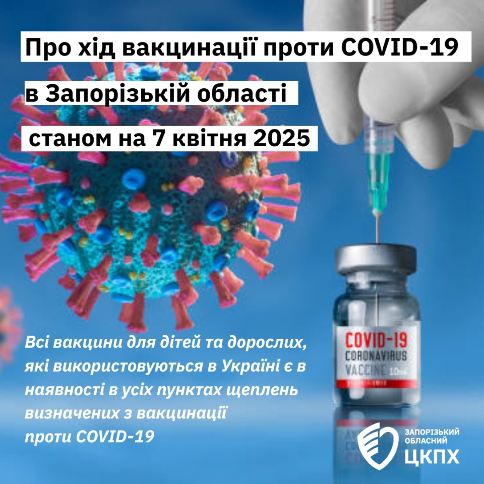 Про хід вакцинації проти COVID-19 в Запорізькій області станом на 07.04.2025
