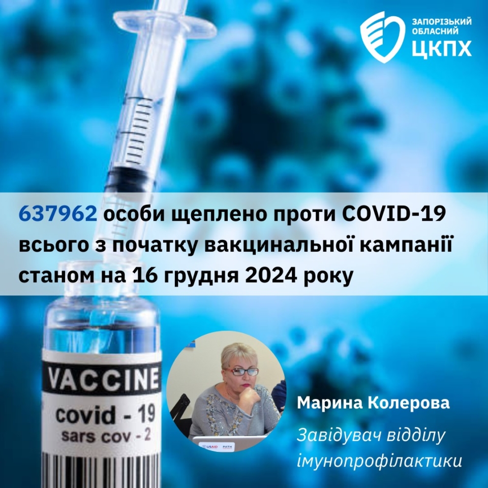 Про хід вакцинації проти COVID-19 в Запорізькій області станом на 16.12.2024
