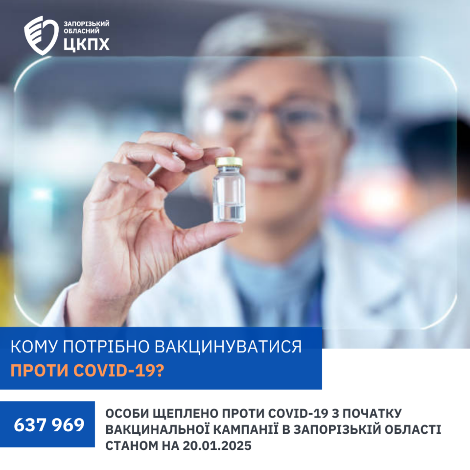 Про хід вакцинації проти COVID-19 в Запорізькій області станом на 20.01.2025