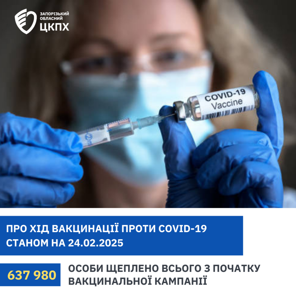 Про хід вакцинації проти COVID-19 в Запорізькій області станом на 24.02.2025