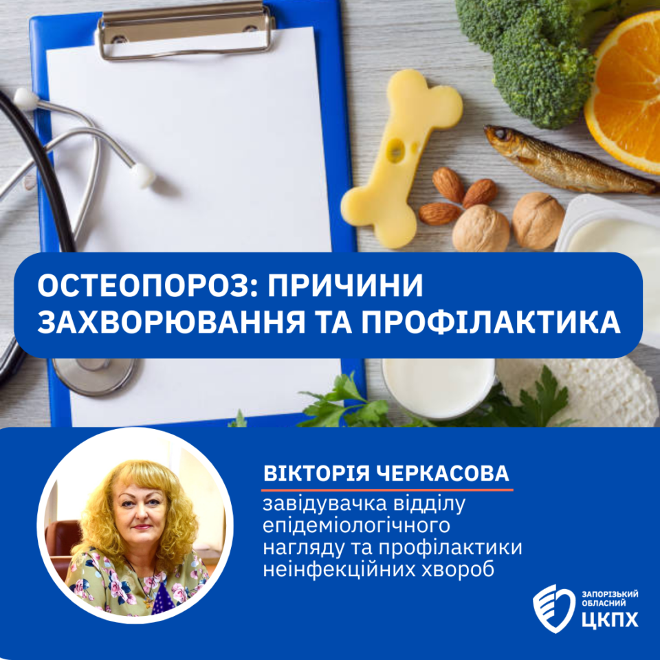 Сьогодні у Всесвітній день боротьби з остеопорозом, поговоримо про причини захворювання та профілактику цього поширеного захворювання. Роз’яснює Вікторія Черкасова, завідувачка відділу епідеміологічного нагляду та профілактики неінфекційних хвороб, дізнаємось з наступного матеріалу.