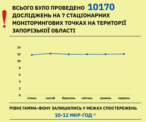 Фахівці Запорізького обласного центру контролю та профілактики хвороб системно здійснюють моніторинг радіаційного фону в області. За перше півріччя 2025 року проведено 10 170 досліджень на 7 стаціонарних моніторингових точках, розміщених у місті Запоріжжі, місті Вільнянську та селищі Новомиколаївка.