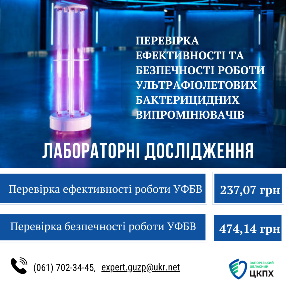 Проведення інструментальних досліджень ефективності та безпечності роботи ультрафіолетових бактерицидних випромінювачів