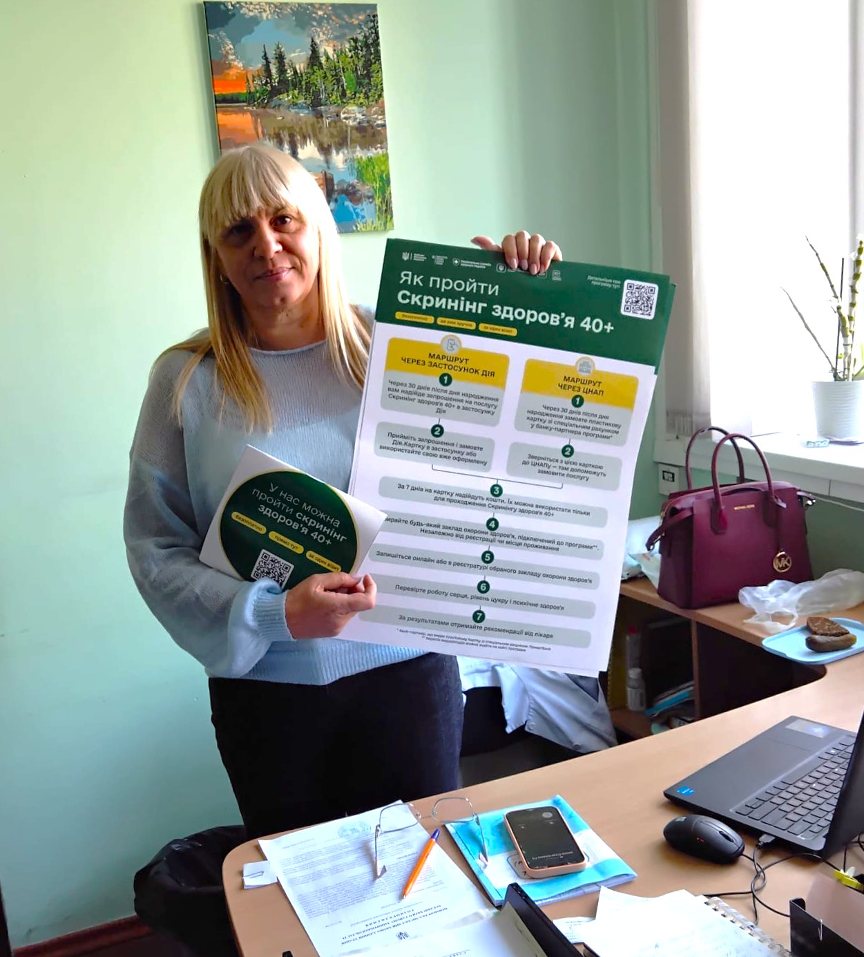 Більше інформації про Скринінг 40+ дізнавайтесь за посиланням: https://screening.moz.gov.ua/?_gl=1*1g9aua0*_ga*NDY5OTEwMDcxLjE3NjY1MTg0NjU.*_ga_B4PFQNWQ1T*czE3NzAxOTc1NDkkbzM5JGcxJHQxNzcwMTk3NTkwJGoxOSRsMCRoMA .