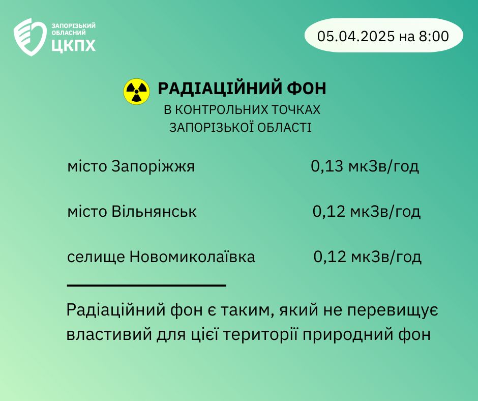 Радіаційний фон в контрольних точках Запорізької області 05 квітня на 8:00 годину