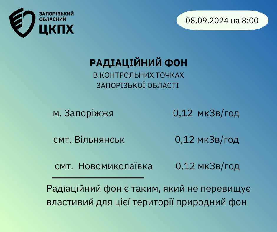 Радіаційний фон в контрольних точках Запорізької області 8 вересня 2024