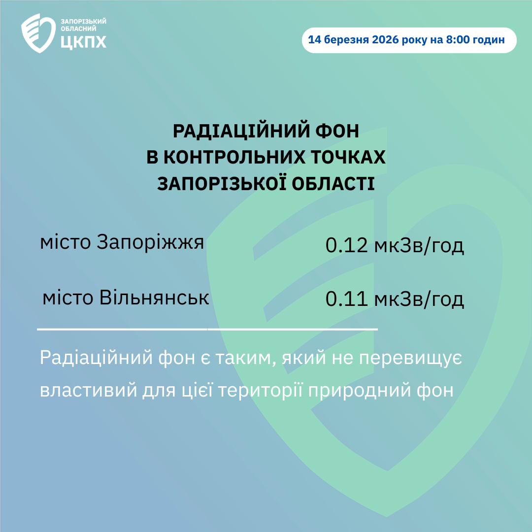 Радіаційний фон в контрольних точках Запорізької області 14 березня на 8:00 годин