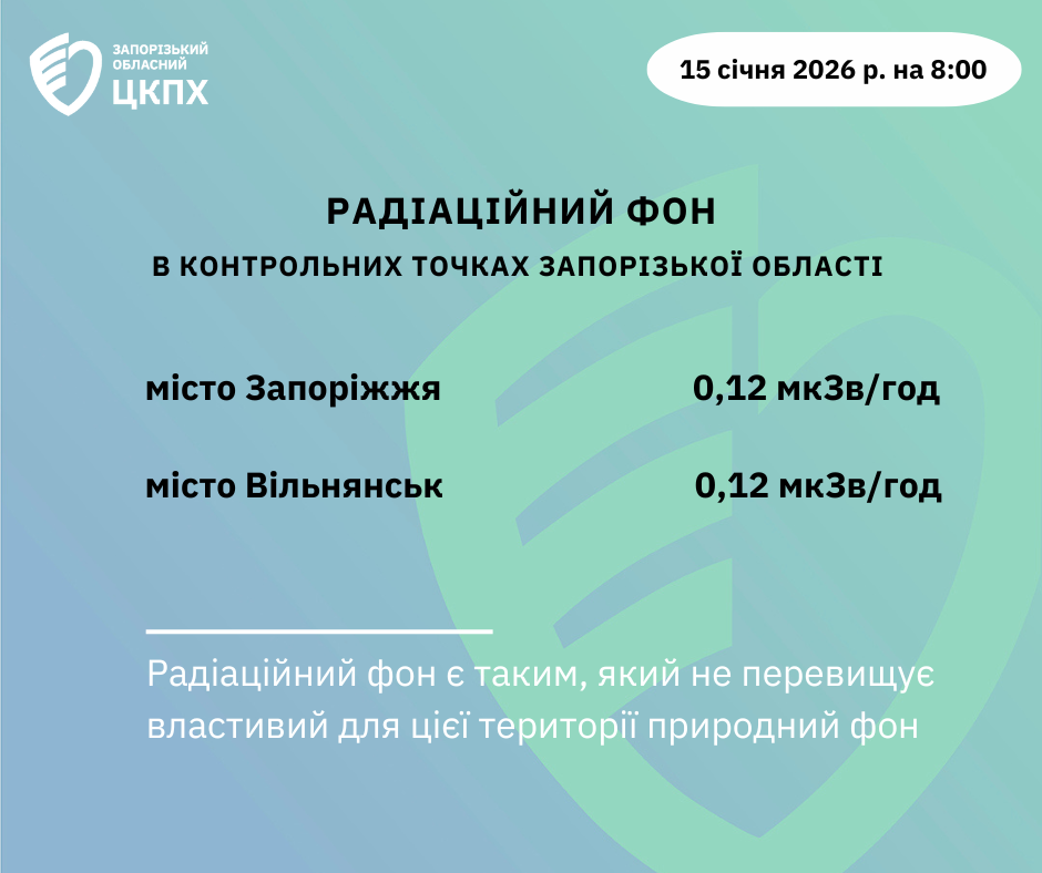 Радіаційний фон в контрольних точках Запорізької області 15 січня 2026 р. на 8:00 годину