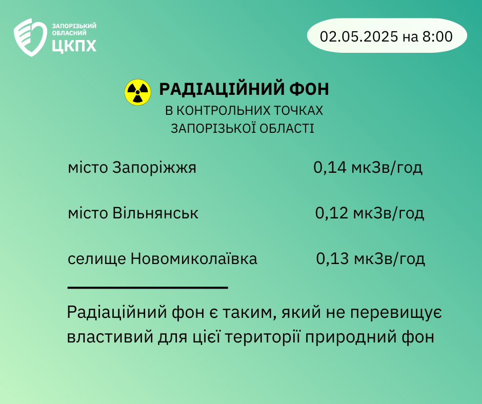 Радіаційний фон в контрольних точках Запорізької області 2 травня на 8:00 годину