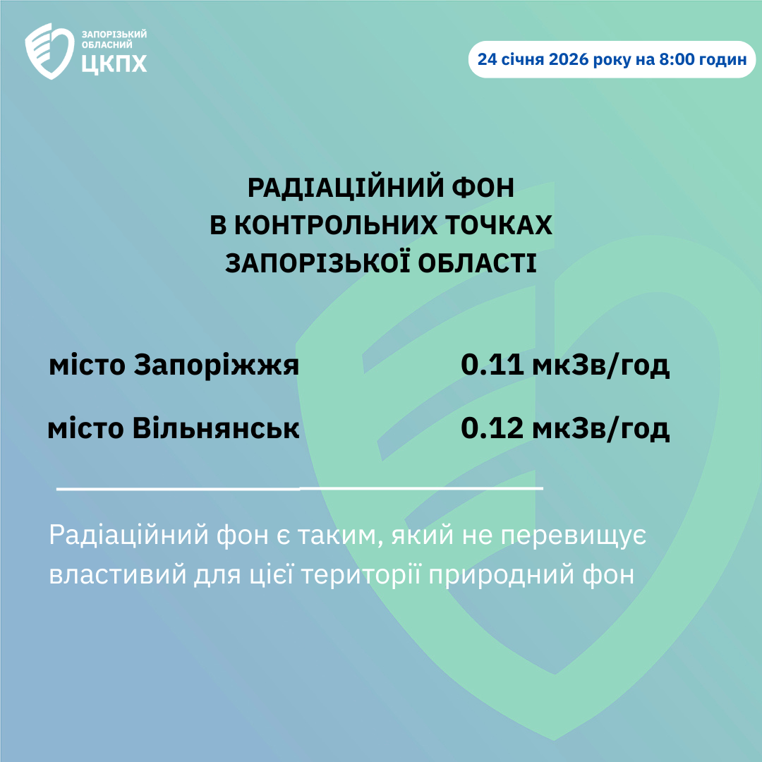 Радіаційний фон в контрольних точках Запорізької області 24 січня на 8:00 годин