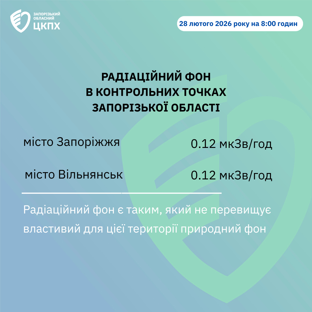 Радіаційний фон в контрольних точках Запорізької області 28 лютого на 8:00 годин