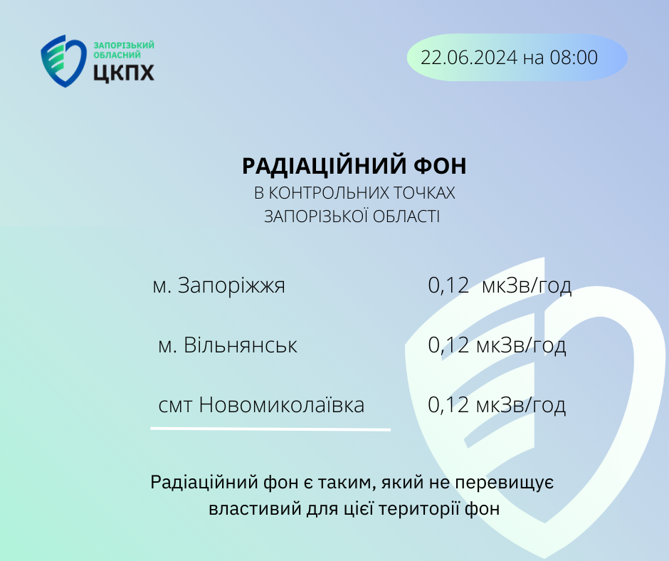 Радіаційний фон в Запорізькій області 22.06.2024 на 08:00